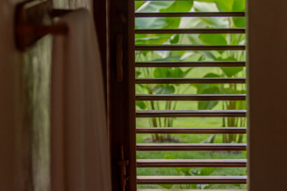 As cinco suítes independentes, se conectam à essa sala por passarelas com cobertura de bambu, dando um ar único de beleza e integração.