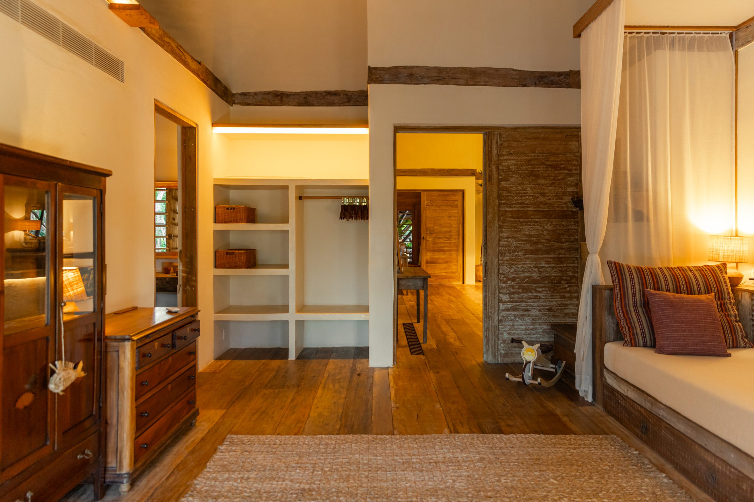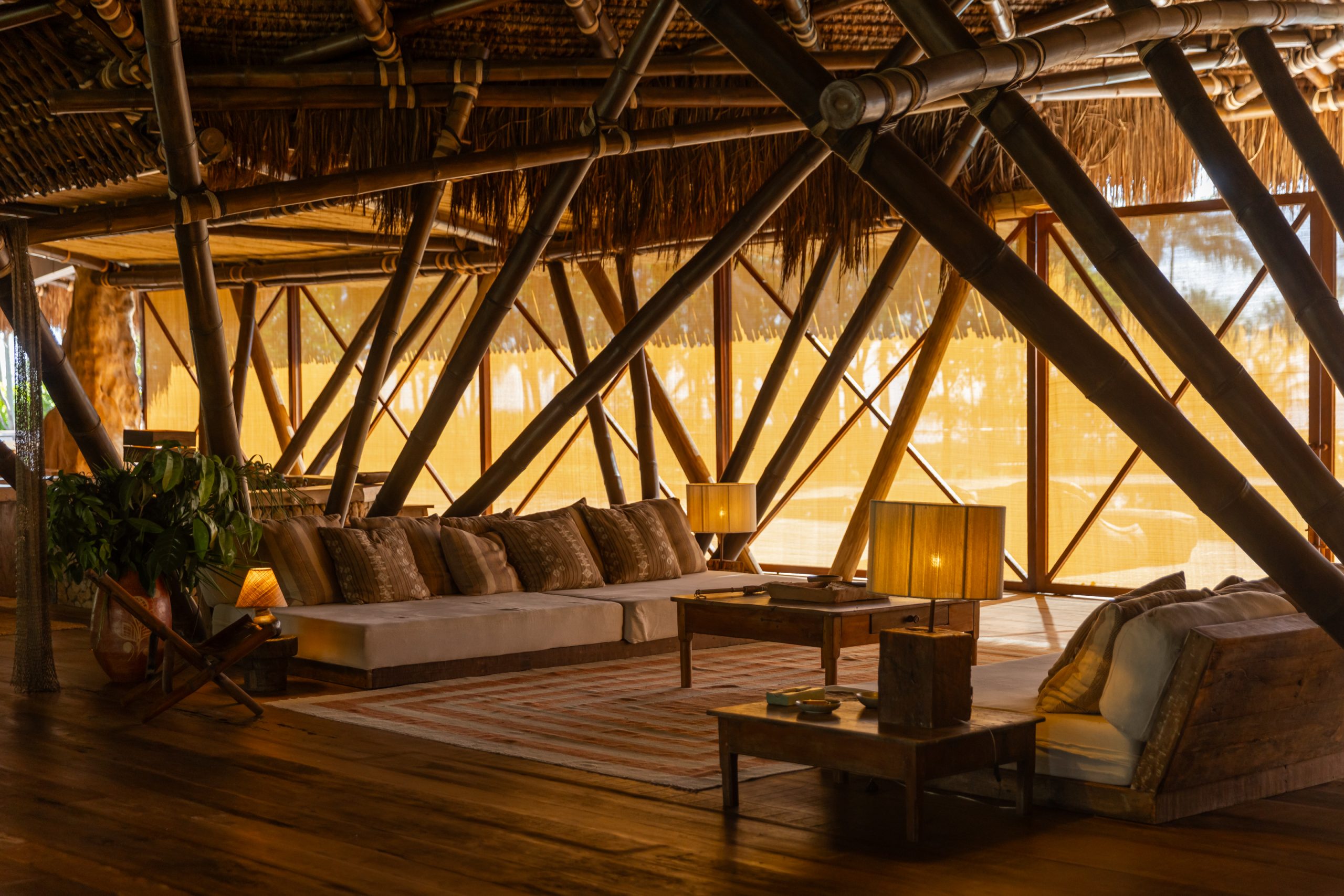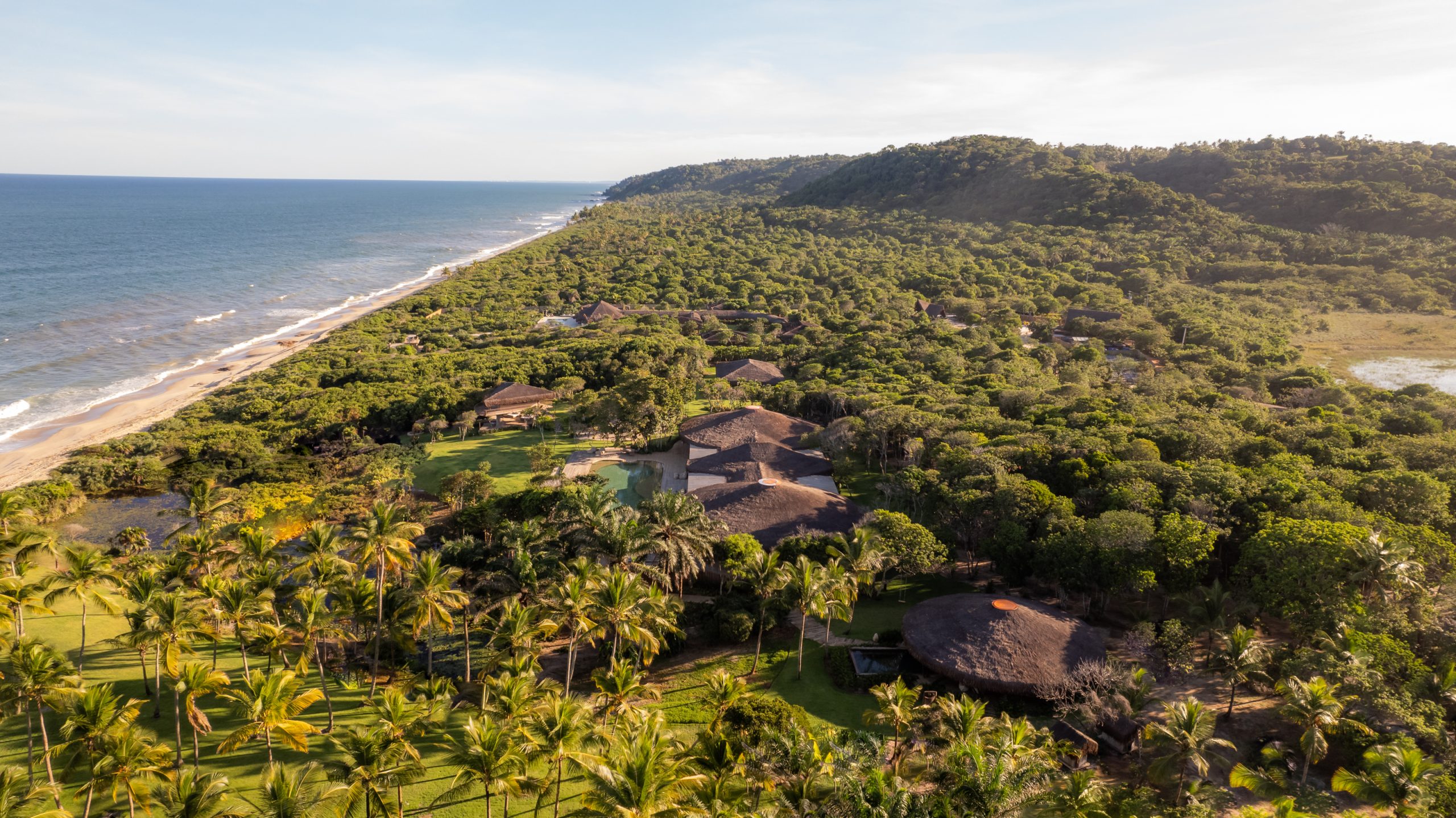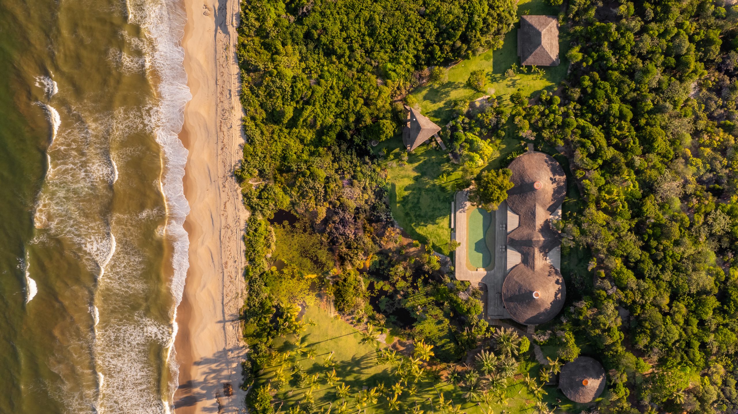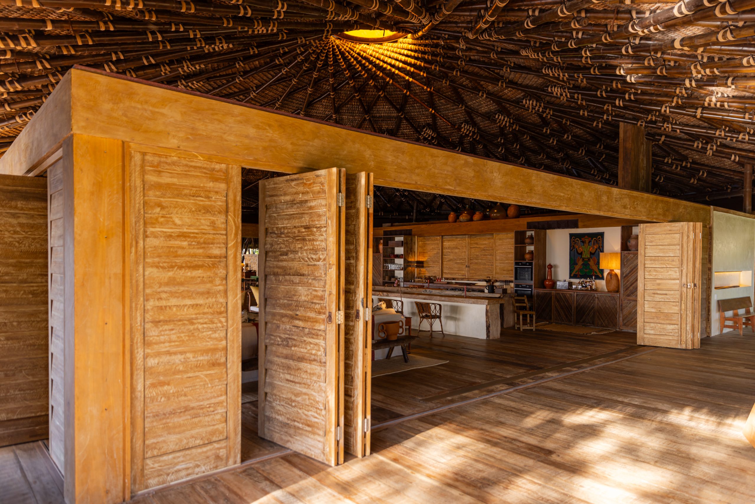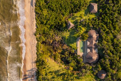 The Sanctuary House is located at Pompilho Beach, Serra Grande, in the southern region of Bahia, a stunning and deserted beach. With six suites, it offers maximum comfort in a truly inspiring environment. The house’s design, combining bamboo, reclaimed wood, and piaçava, creates a unique and welcoming atmosphere.
